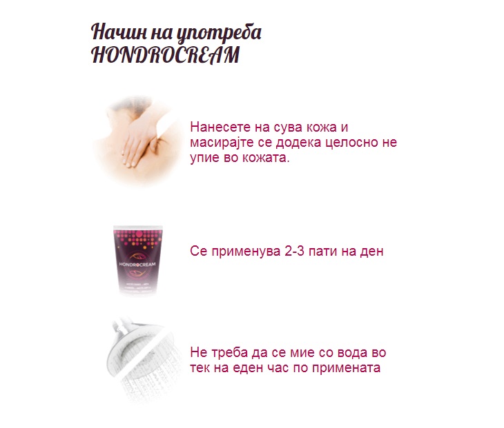 Главната предност на кремот – подобрено нутритивно сврзно ткиво. Како резултат на тоа, Hondrocream има позитивен ефект врз телото.