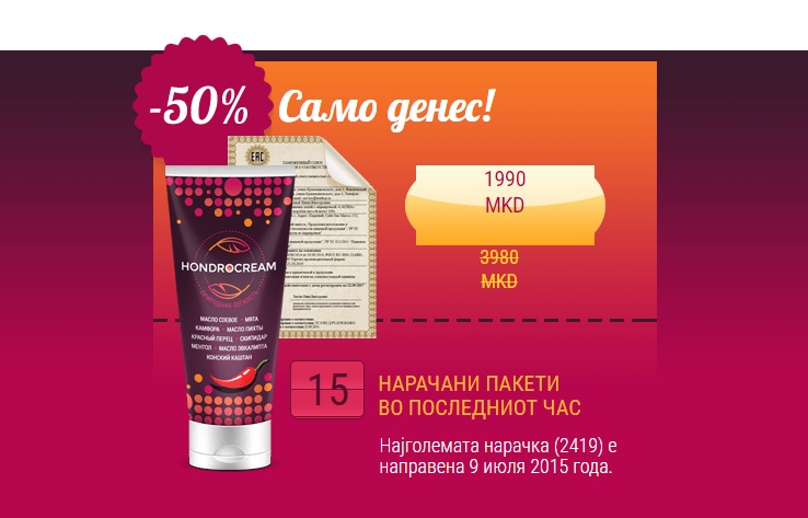 Дури и јас, не најсигурен корисник на компјутер, направив сè за прв пат. Отпрвин оставив барање на официјалната веб-страница, го чекав консултантот да се јави (по 20 минути), разговараше за условите за плаќање и испорака. Hondrocream Донесена до поштата по 10 дена, и само тогаш платив за мојата нарачка.